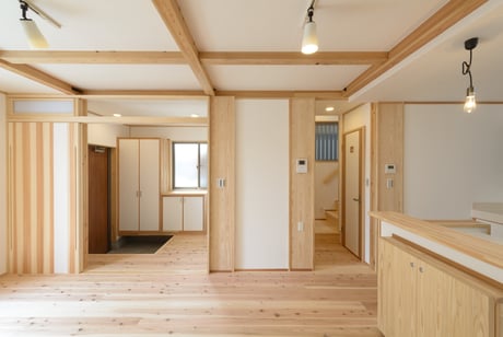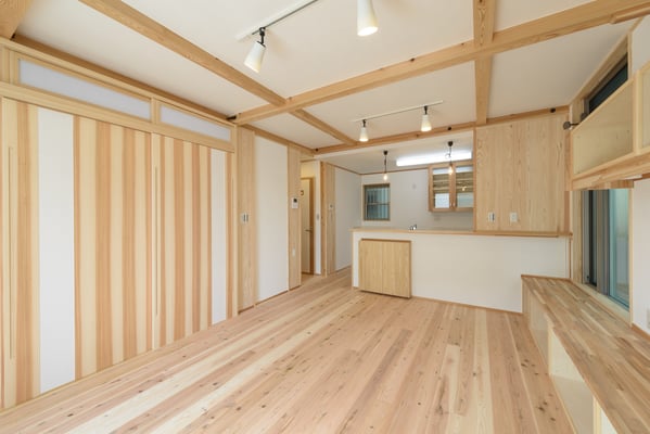 内部仕上げ : 天井/土佐和紙&杉板 壁/漆喰&杉板