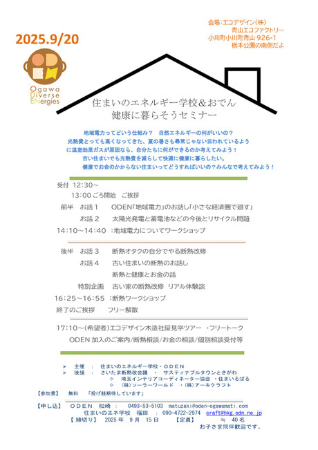 主催:「住まいのエネルギー学校」&「サステルタウンときがわ」