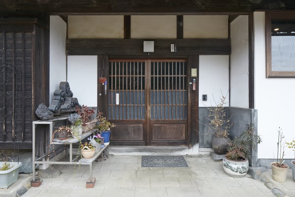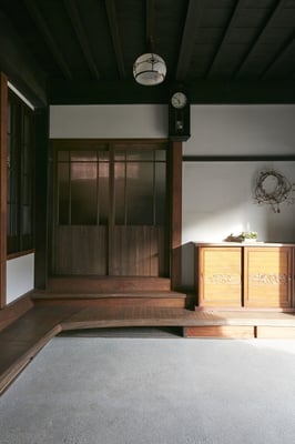 欅の式台を入れ、壁を塗りなおし、土間を洗い出し、昔に戻しました。