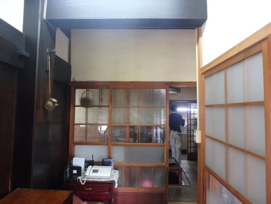 昭和の改修で半分に仕切られ床はビニール系の床に壁もクロスが張られていました。