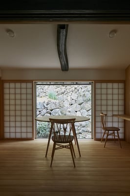 風が抜け、いい感じの石垣が見える北側の書斎となりました。