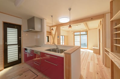 ダイニングキッチンも家族の距離が近く、手伝いのしやすい家族の関係が濃いダイニングになります。