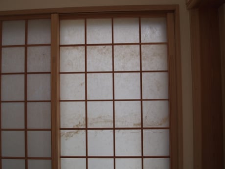 自家製和紙 ときがわ町の手漉き和紙工房で建て主さん自ら漉いた和紙。 模様が入っていますが意図して入れたものでは無く、「なっちゃった」柄です。 なかなかいい感じ オリジナルってやっぱり味があるよ。 宮原の家