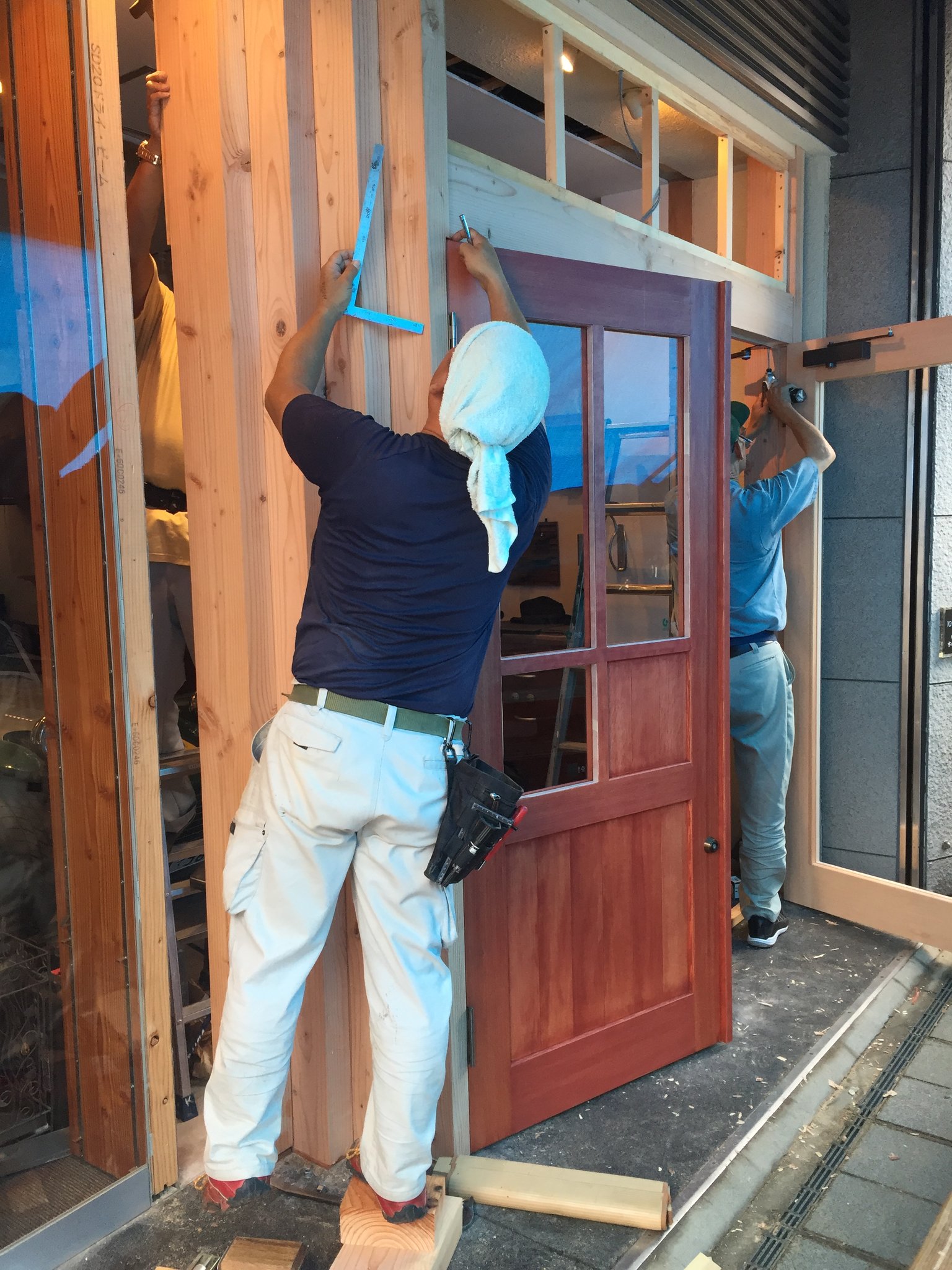 カニヤ店舗 2回目の改装、 プロジェクト1が好評だったので今回もご指名をいただきました。 私がかかわるとどんどん木質化していきます。 今回も木の塊を用意しました。 かなり強引な力技です。 自動ドアをやめ今度は自分で開けないとは入れないお店になりました。...