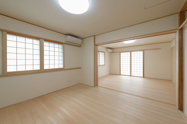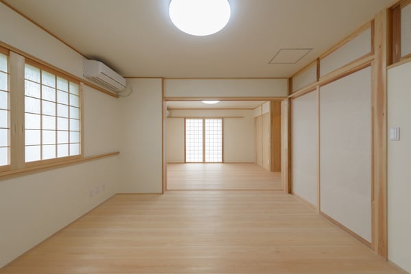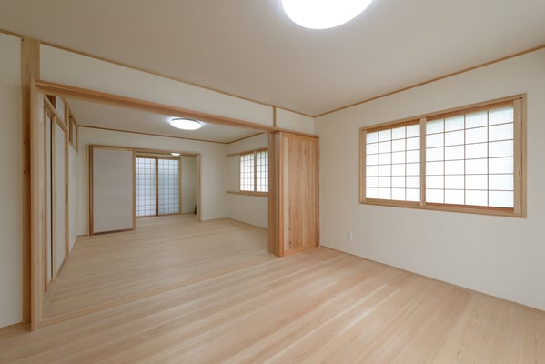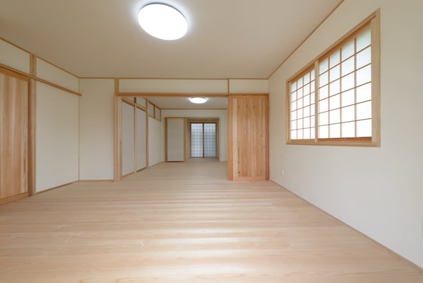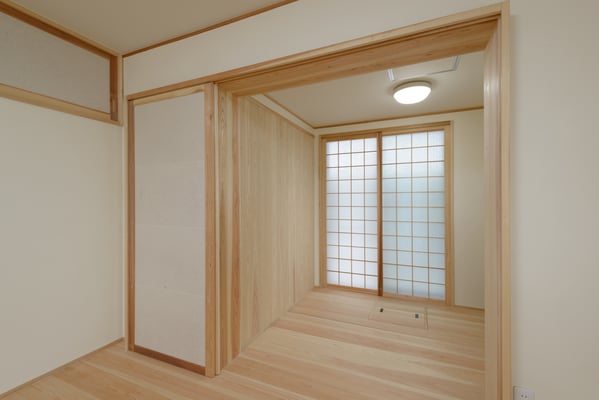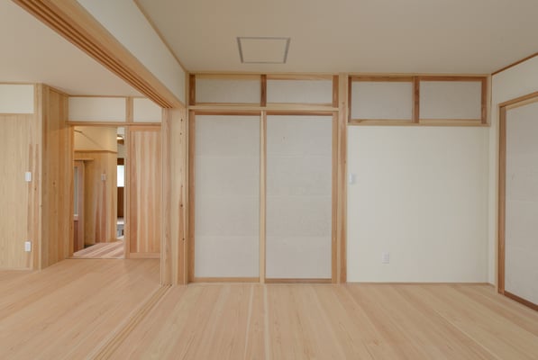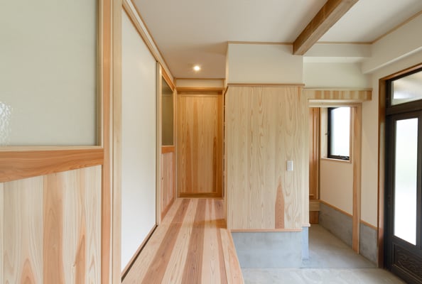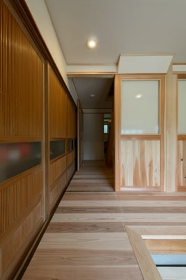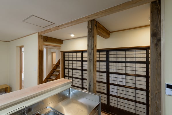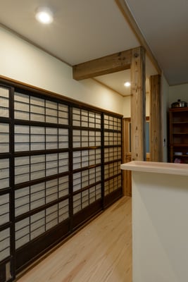 建具の手前は以前は3尺幅の中廊下で今回は廊下部分もダイニング空間に取り込みました。
