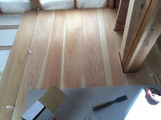 サワラ30mm床板貼ってます。