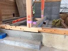 新たにつくった基礎に土台と柱が載る。