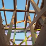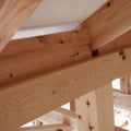 一般的には施工の簡便さと、屋根剛性がとりやすいため構造用の合板が使われますが、2階建ての屋根剛性であれば、べニアに頼らなくてもクリアーする方法はあります。