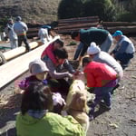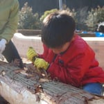 みんなで杉の皮を剥きました。