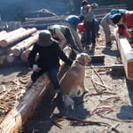 沢山の方に協力していただき、3mの梁と柱の皮を剥きました。