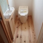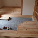 下張りと言って杉の15mmです。この上に仕上げの床材(杉15mm)を貼ります。
