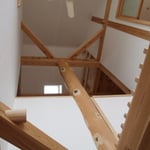 床板は杉の30mm  手前の斜めの水平材は火打ち梁といい、合板を使わ無い工法では水平剛性を高めるために無くてはならない重要な部材です。