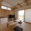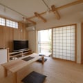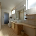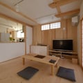 内部仕上げ : 天井/土佐和紙&杉板 壁/漆喰ローラー仕上げ&杉板