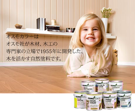 オスモカラー(フロアーカラー)は防虫防腐剤を一切含まず乾燥して表面は人体動物に安全でヨーロッパの玩具安全基準をクリアーしています。