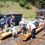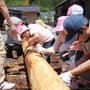 冬に伐採した100年物の杉の皮をときがわ町で剝きました。