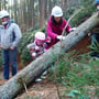 皮を剥いて丸太のまま吹き抜けに使う柱を伐採しました。