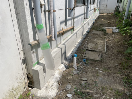 改修手段としては腐食部分を撤去し、ジャッキUpで水平を取りながら脚部を補強して新たな基礎をつくります。