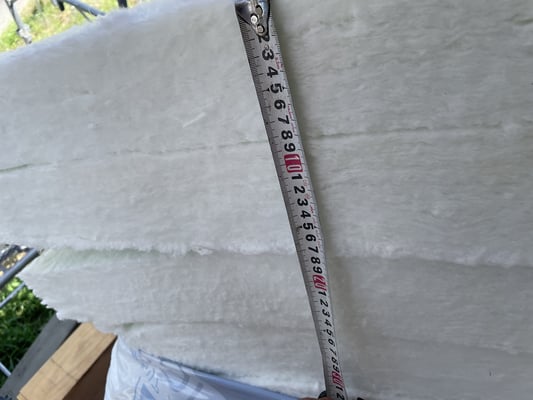 天井面として杉板の20mmを梁の間に落とし込み、気密フィルムを張った上で90mmのGWHG20K-34を2重で充填し180mmの断熱をまず確保し、その上で外断熱として50mmのフェノールフォーム0.020を貼り込みます。