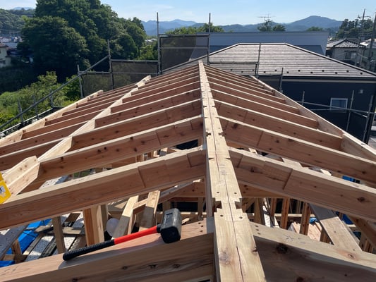 2025.6 青空にきれいな登り梁 上棟