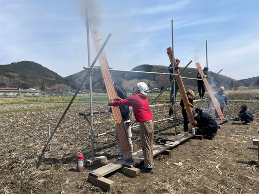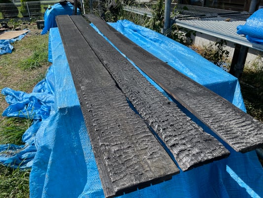 2025.3 外壁に使う杉板を焼きました。