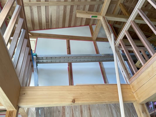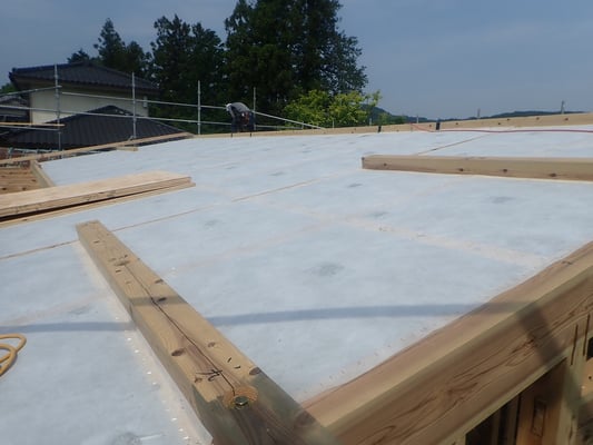 この仕様で屋根面の実質熱還流率は「0.141㎡・K/W」が確保できるとともにこの時点で2階の天井はすでに仕上がっています。