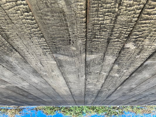 春に焼き上げた20mmの杉板、炭化層は3mm程度でしっかり焼けています。