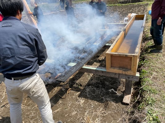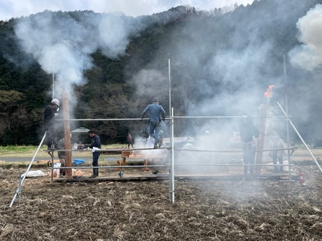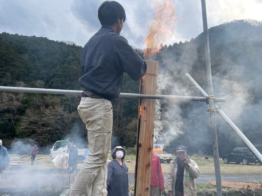 2025.3 外壁使う杉板を焼きました。