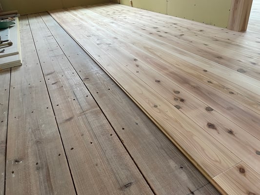 その荒床の上には15mmの杉板を張ります。