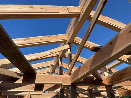 今回は屋根回りのみ手刻みで主要部分はプレカットとしています。