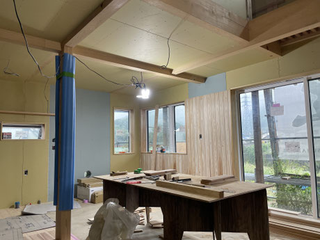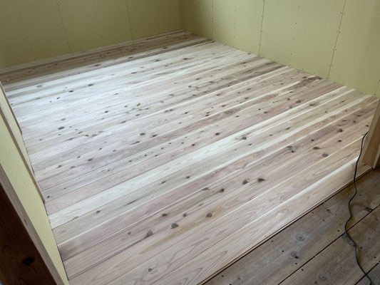 床の下地はべニアではなく、この上に20mmの杉の荒床を張り、その上で仕上げ床を張ります。
