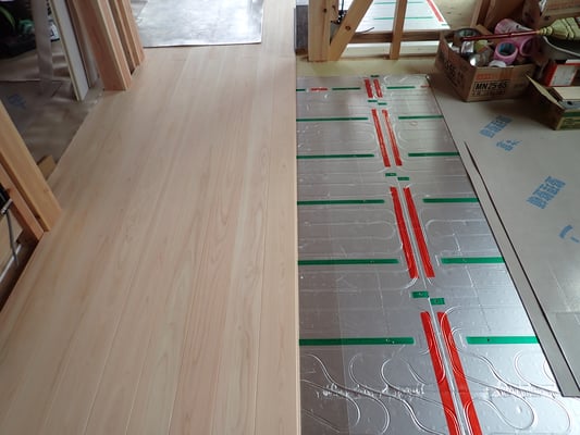 床の仕上げ材は桧の節の少ない無垢板で、少し強めに乾燥をかけています。