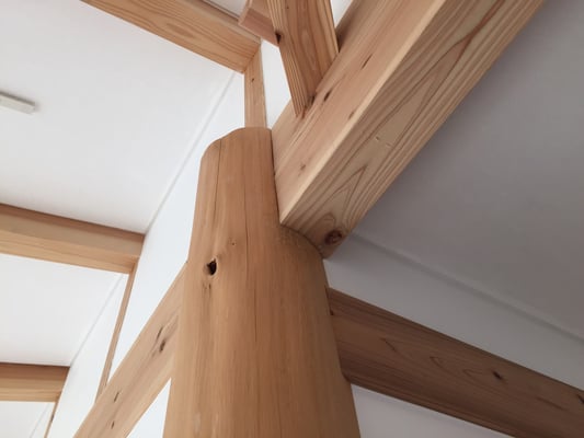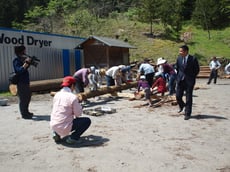 去年一緒に山に行き伐採してもらった杉の皮を剝いています。