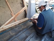 板金屋さんはノシ瓦の上の水切りをチョキチョキ