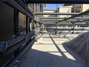 写真はコンクリートの中になってしまう地中梁ハンチ部、今しか見れないアングル