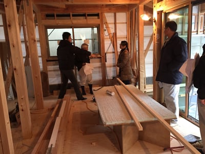 暖房の無い現場でコンセント関係やガス関係の打ち合わせ。