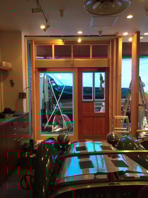 自動ドアをやめ今度は自分で開けないとは入れないお店になりました。
