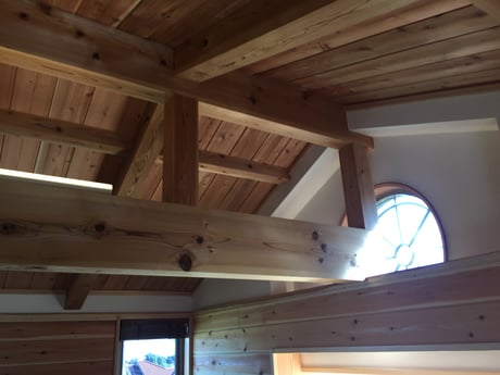 かなりアクロバット的な丸窓の配置は建て主さんのこだわりから生まれました。