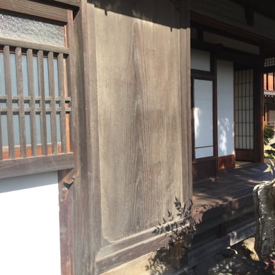 次は一般的に見ることができる下見板張りの鏡板だけれども縦竿の本数を見てほしい、8本、普通このサイズなら6本あればいいところ意匠が細かい、しっかり押さえられているため板の浮いているところも見受けられない。