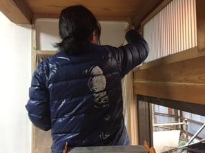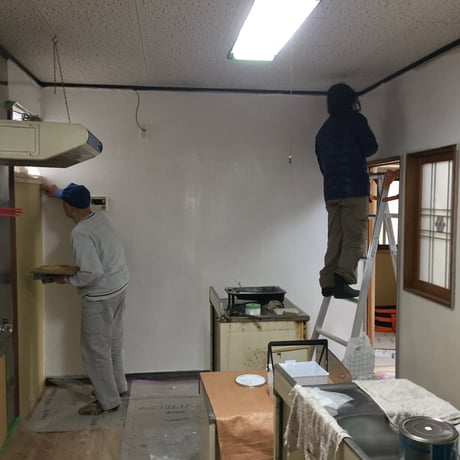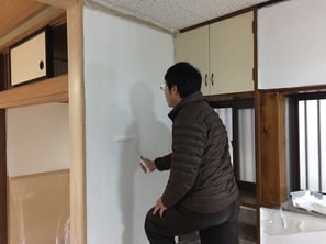 今回もプロにパテ受け下地処理をお願いし、養生から下塗り中塗り仕上げ塗りとセルフすることになりました。