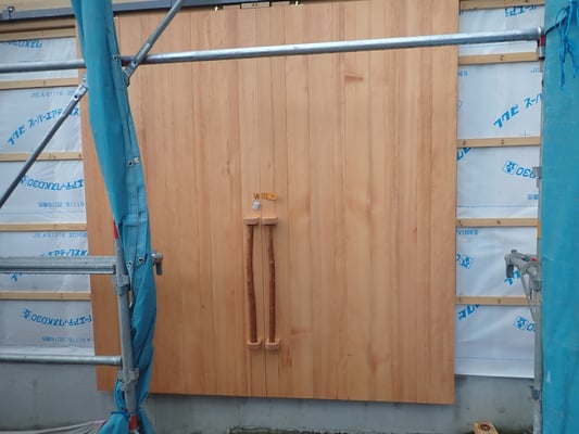 大きな材料や完成した家具も出入りするので高さも2.3m幅も1.8m開口です。