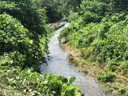 傍らには鎌北湖からの流れがあり、山も近いです。