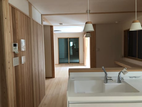 また機密性能を特別に高めていないので断熱層に入った湿気が抜けやすいのもセルロースのよいところ、壁の中に室内の空気が入ってもいいのだよ。というつくりです。